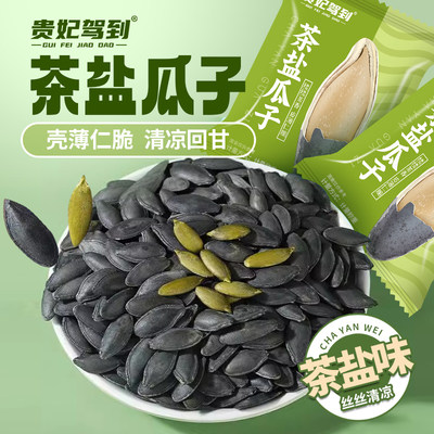 贵妃驾到!茶盐南瓜子。它采用了茶盐味,独立小包装设计,方便食用,保持瓜子新鲜,不论是在家还是外出,都能随时随地享用。最厉害的是,它还有两种规格可选,500g和250g,而且,大颗粒设计,每一颗都饱满饱满